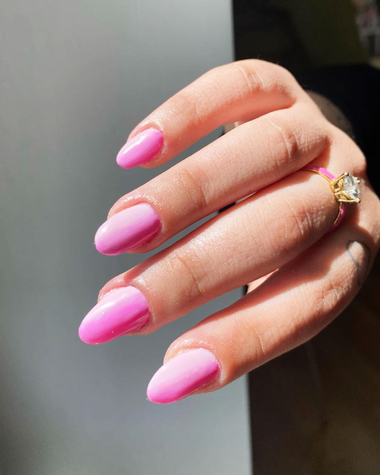 Applicazione di smalto che dura fino a tre settimane senza scheggiarsi, mantenendo le unghie perfette e lucide.